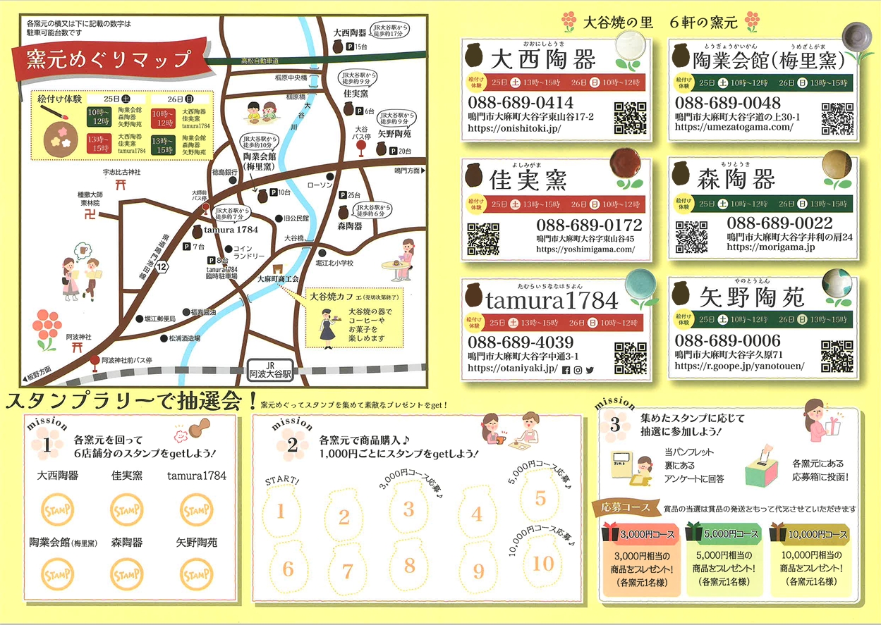 6窯元でのスタンプラリーや絵付体験、大麻町商工会での大谷焼の器を使った喫茶も実施されます。